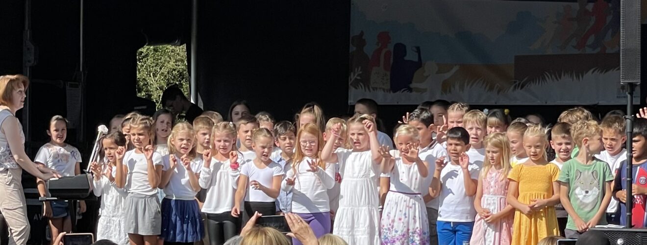 Am Samstag, den 05.09.2023 fand das „Neuwiedenthaler Dorffest“ statt. So wie jedes Jahr waren natürlich einige „Wirbelwinde“ unserer Schule dabei. Circa 60 Kinder aus den 2. und 3. Klassen sangen die Lieder, die sie vor den Ferien mit Frau Seibel, der Chorleiterin, eingeübt hatten. Nichts hatten sie über die Ferien vergessen. Am Ende gab es noch zwei Zugaben! Allen hat es viel Spaß gemacht, sowohl den Sängerinnen und Sängern als auch den vielen Zuschauern. Nächstes Jahr sind wir bestimmt wieder dabei!