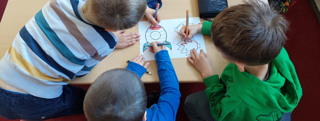 Nach der Ankunft in der ersten Pause gingen sie mit unseren 1.Klassen in den Unterricht. Dabei ging es sofort zur Sache. Sie hörten gemeinsam den Zebra-Rap, nach dem auch unsere Kinder die Buchstaben lernen. Im Anschluss wurde gespielt, gemalt und gesungen. Die Großen kümmerten sich dabei liebevoll um die Kleinen.