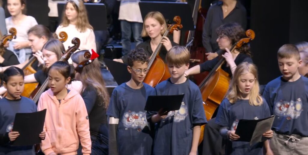 Am Dienstag, den 9. Dezember 2025 fand im Forum der Hochschule für Musik und Theater Hamburg (HfMT) ein Konzert mit Schulklassen der Hamburger JeKi-Schulen statt und unser Grundschulorchester „Neugrabener Klangstrolche“ war mit dabei! 😊
