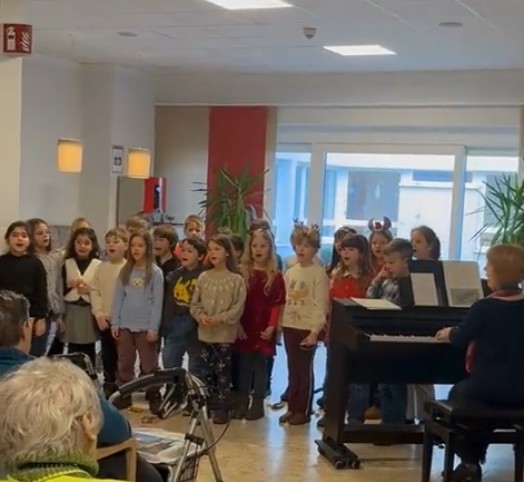 Wir waren in dem Seniorenheim „Betreutes Wohnen Neuwiedenthal“ am Rehrstieg. Dort haben wir für die Bewohnerinnen und Bewohner weihnachtliche und andere Lieder gesungen.