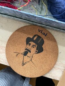 Die Bilder konnten wir dann allein in 2-er Teams auf Taschen, Postmappen und Korkunterlagen und Postkarten drucken.