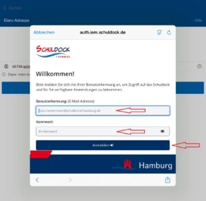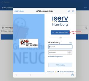 Dieses ist notwendig, da IServ bei uns über das zentrale Zugangsportal schuldock.de von Hamburg genutzt wird.