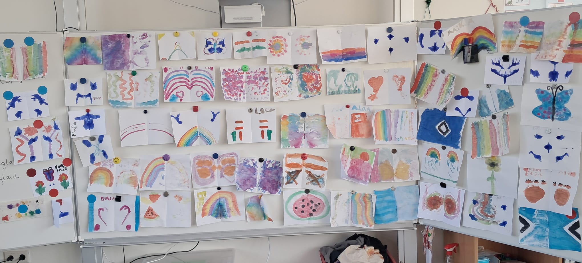 Drei Tage lang war unser Thema „Symmetrie“. Was ist eine Symmetrieachse? Wie spannt man symmetrische Figuren und Symmetrieachsen auf dem Geobrett? Wie kann uns der Spiegel helfen, Symmetrieachsen zu erkennen? Wo finden wir in unserer Umwelt symmetrische Formen? In Gruppen, mit einem Partner oder auch mal allein konnten die Kinder sich an diesen Tagen intensiv diesen Fragen widmen. Dabei haben