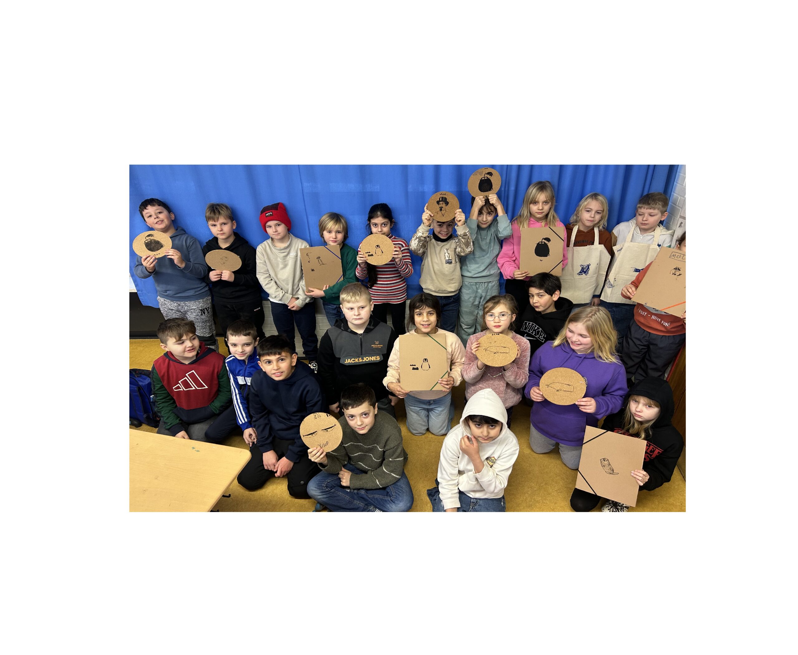 An unserem Projekttag im Sachunterricht haben wir, die Klasse 3e, eine Siebdruck-Werkstatt eingerichtet. Zum Einstieg in das Projekt haben wir einen Filmausschnitt gesehen, in dem eine Künstlerin erklärt hat, wie ein Siebdruck gemacht wird. Wir haben uns dann ein Bild auf einem Sieb ausgesucht. Es gab verschiedene Motive. Wir hatten einen Wal, einen Pinguin, eine Katzenbirne, eine Motte, ein Otter